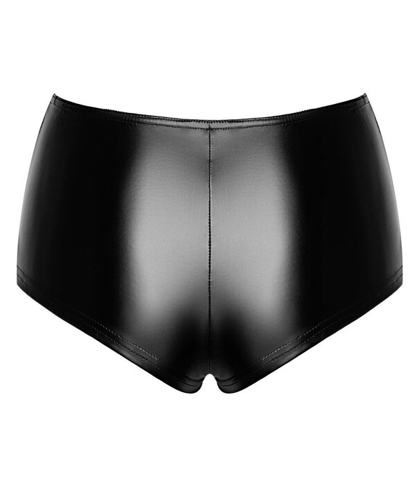 Schaarse, hoog uitgesneden Orgia Mysteria hot pants van Noir in een zwarte powerwet-look. Zit als een tweede huid. Zacht en rekbaar voor maximaal comfort en bewegingsvrijheid. Kan op verschillende manieren gecombineerd worden.